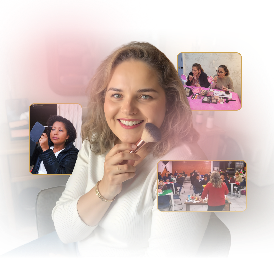 Com técnicas profissionais ensinadas por uma especialista em maquiagem que entende de pele, cor e autoestima. Nada de tutoriais confusos, nada de produtos caríssimos. Só o que realmente funciona pra mulheres reais.
